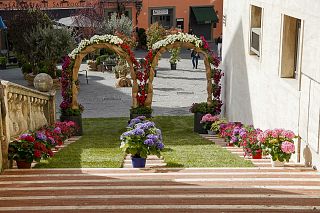 VALDICHIANA. La pioggia si ferma poco prima dell’inizio e il borgo accoglie carri fioriti, gruppi folkloristici e ospiti istituzionali lungo il percorso ellittico