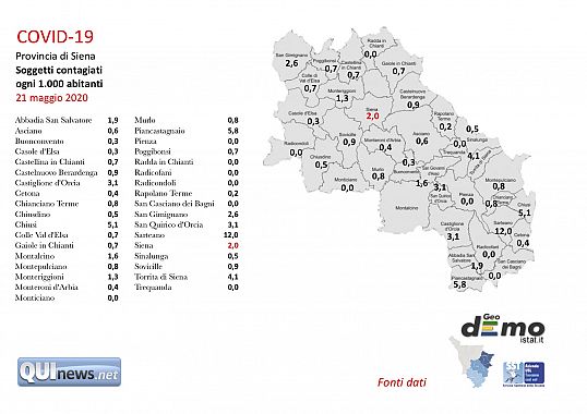 Da Asl hanno precisato: "La Regione indica oggi un caso su Siena. E' uno dei due che la Asl Toscana Sud Est aveva indicato ieri. E' il solito problema dello sfasamento di orari per il quale l'Asl copre una fascia oraria più ampia arrivando alle 14. Quindi confermiamo zero casi nella fascia oraria 14 di ieri - 14 di oggi. E il decesso segnalato dalla Regione per oggi è uno dei due segnalati dalla Asl nella giornata di ieri".