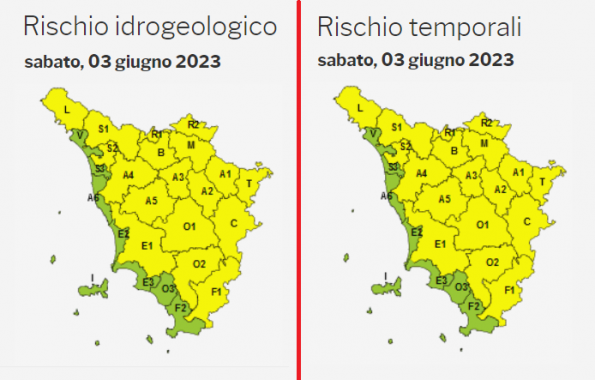 TOSCANA — Toscana ancora in allerta per temporali e rischio idrogeologico, con bollettino da codice giallo emesso dalla sala operativa di protezione civile regionale per la giornata di domani sabato 3 Giugno.