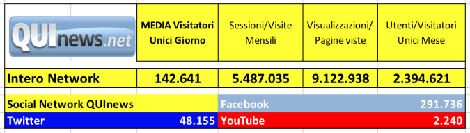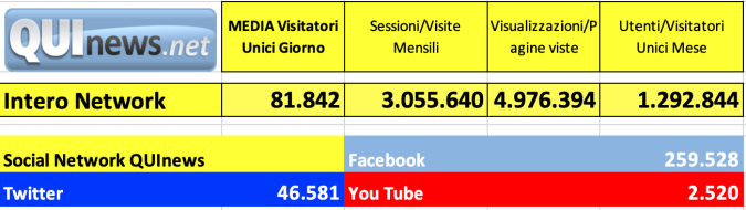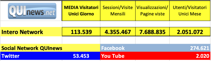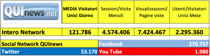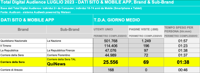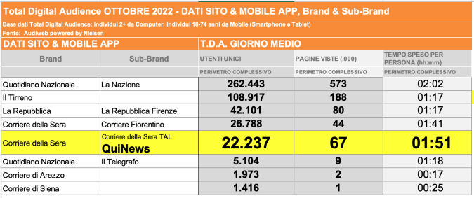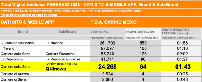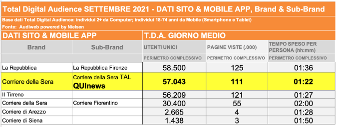 I DATI AUDIWEB DEL MESE DI NOVEMBRE 2020 NON SONO PRESENTI PER ADEGUAMENTO TECNICO DELLA RILEVAZIONE DEL NETWORK QUINEWS COME SUB BRAND DEL CORRIERE DELLA SERA